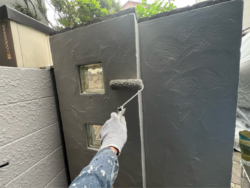 下塗り材を塗布する工程です。下塗り材には、下地調整や上塗り材との密着を良くする役割があります。